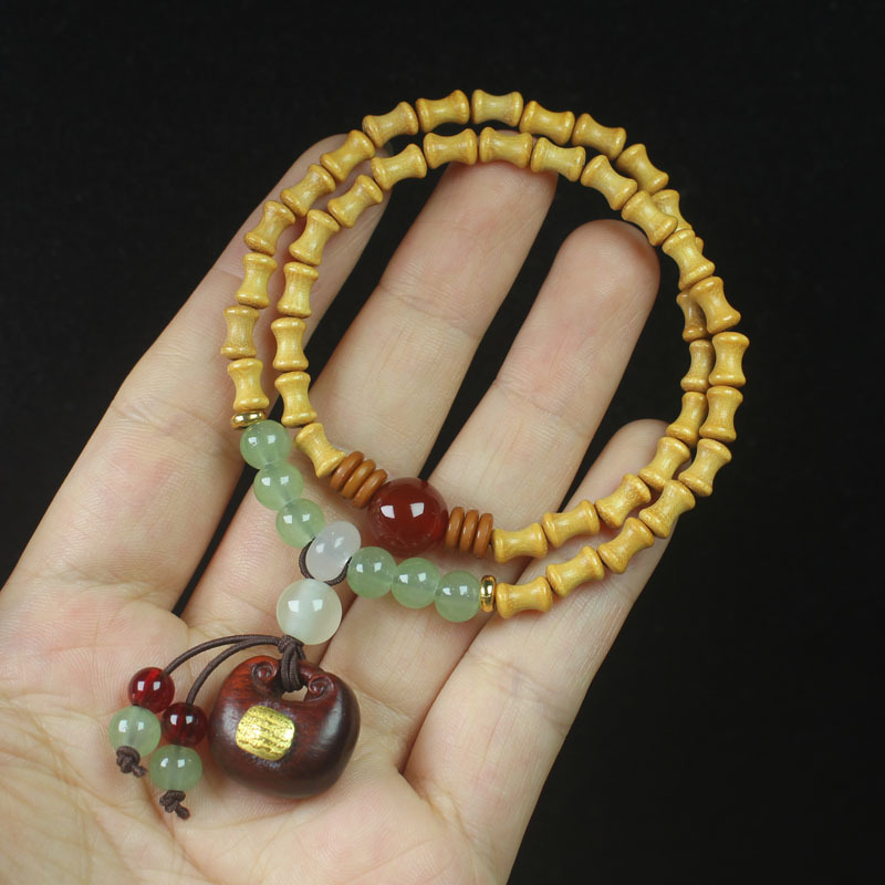 ホノルルの竹の節の双輪の仏珠の数珠の5条はお金の袋の金の女性の項の文を経て手のチェーンのアクセサリーの卸売りを遊びます。