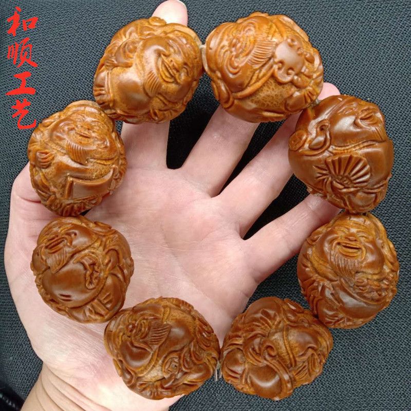 超巨大輸入ブラジルインドネシア大ペリー純手八大財神は文を持ってオリーブの核を彫刻します。