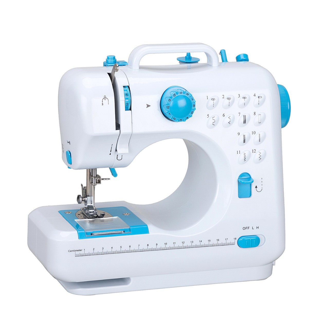 T505人気商品、越境ECアマゾン向け家庭用ミシン、ミニポータブル、縫い目をしっかりする、ボタンホールもできる、厚物対応12針ミシン