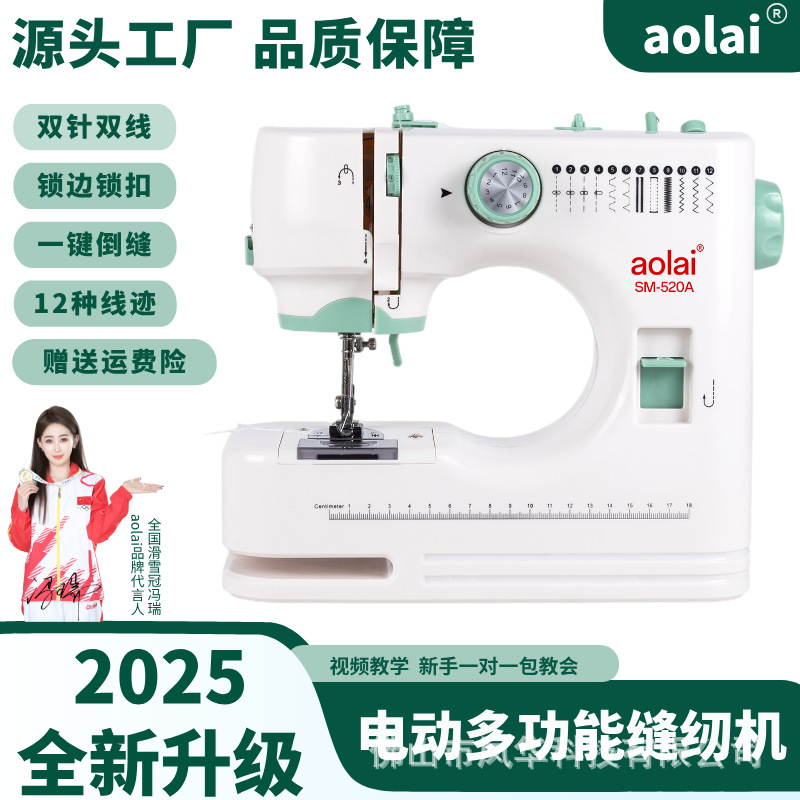 Aolai520 ミシン家庭用小型電気全自動ミニミシンロックエッジミシン二本針二本糸ミシン