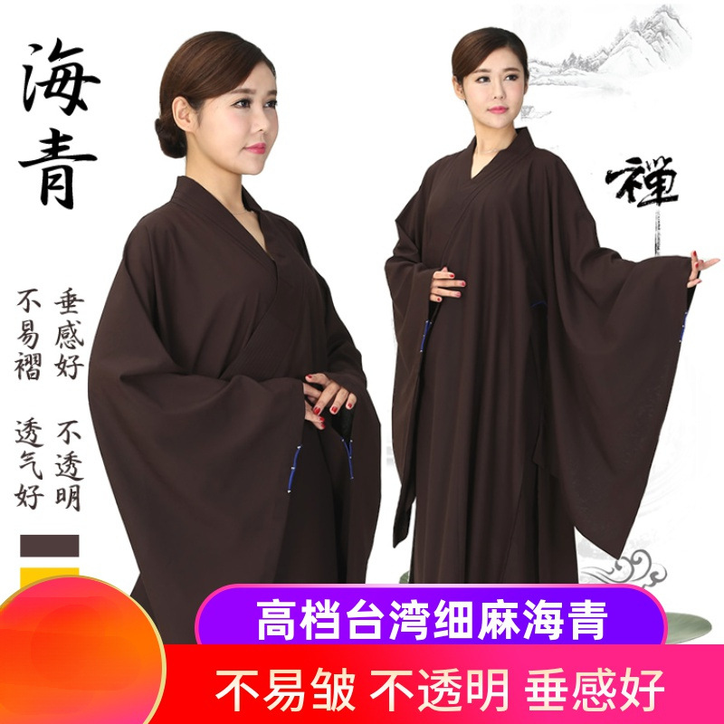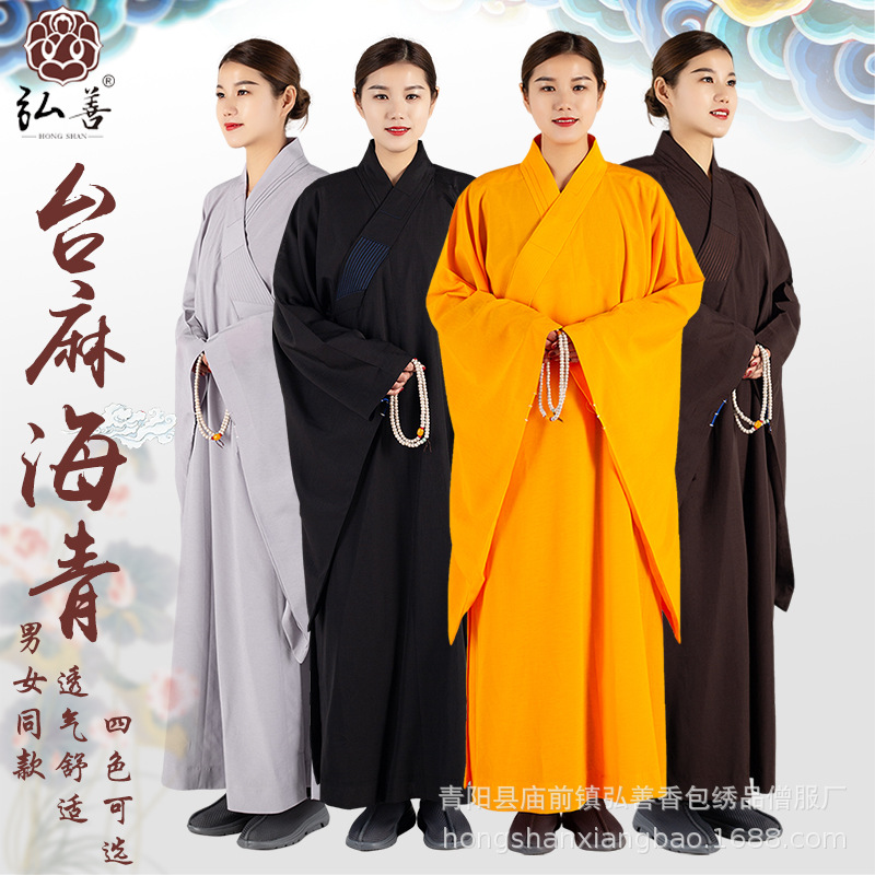 台湾麻生地海清ロングコート仏服女性長袖海清禅メンズ僧服春、夏、秋、冬