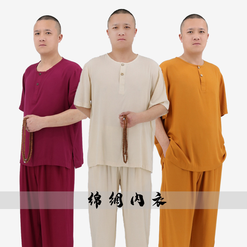 Dixi モンク服半袖夏薄いモンク服女性の僧侶服下着ボトリングシャツ僧侶綿シルク睡眠