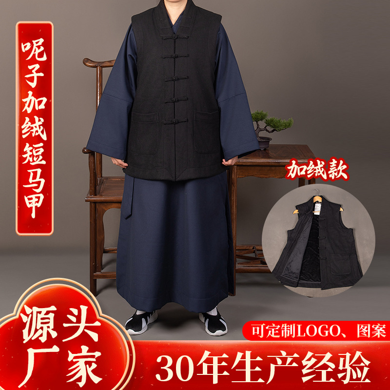 ラシャとベルベットの短い馬甲冬にベルベットの道士服の短い馬甲道服と綿の保温男女の肩のベストクリップ