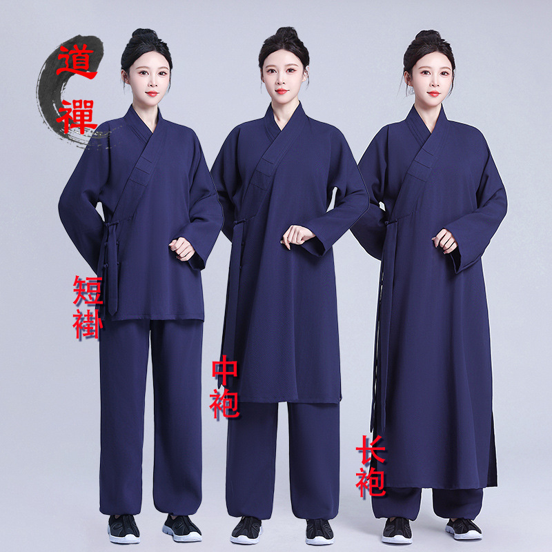 新商品の僧衣セット斜紋綿道装道士服男女タイプの斜襟僧衣チベットの青い道衣セット
