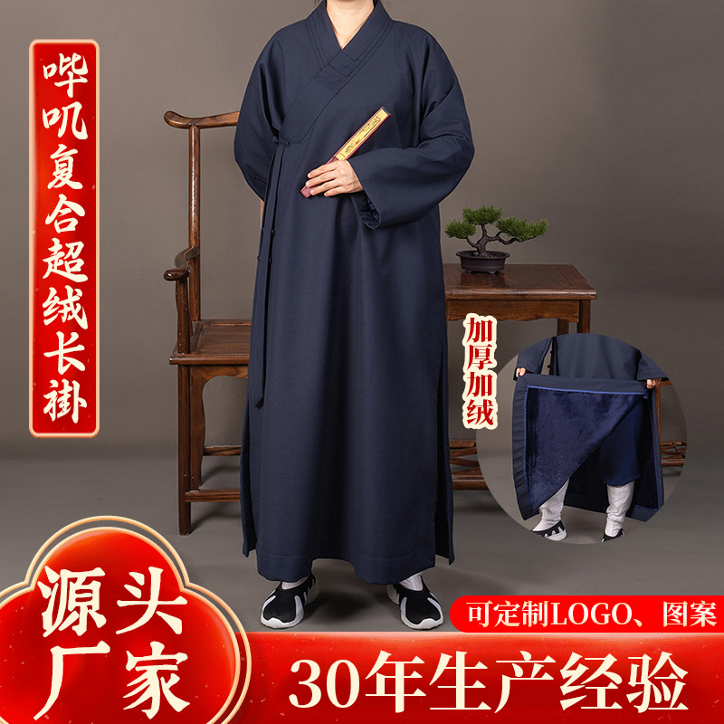冬の僧服の綿入れの上着とベルベットの男女の金の和尚の尼姑は家族の上着を出て厚い保温の師父の長いシャツの僧服を着ます。