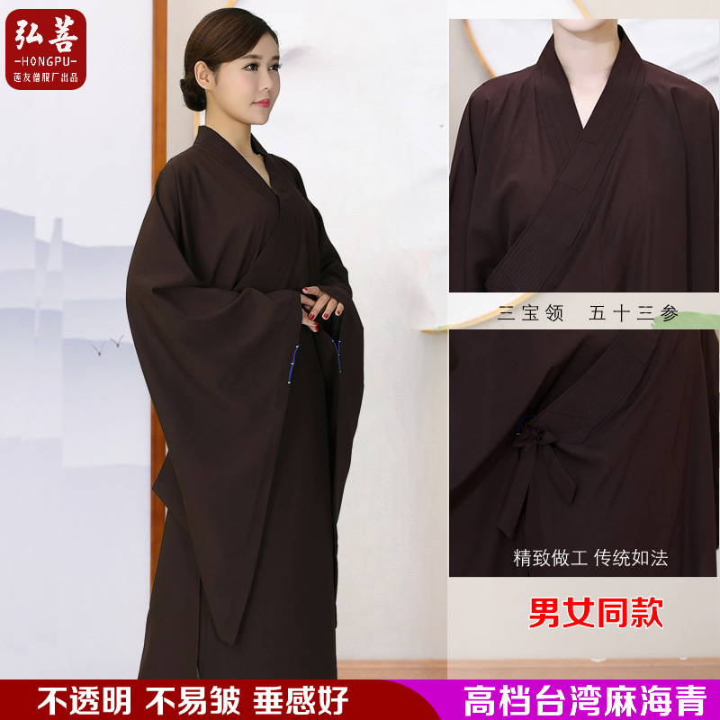 海清在家服女性の法会僧侶海清僧服僧服ロングガウン青衣メンズブラウンブラック
