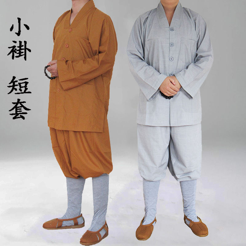 僧服小袖短衣中長綿秋冬黄色灰色セット羅漢服短袖大裾手作り