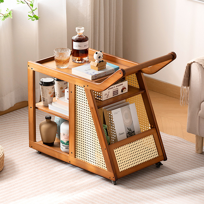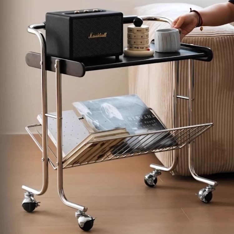 Manye トロリー家庭用無垢材ソファサイドテーブルリビングルーム可動収納ラッククリエイティブインターネットセレブモデルステンレス鋼ダイニングカート