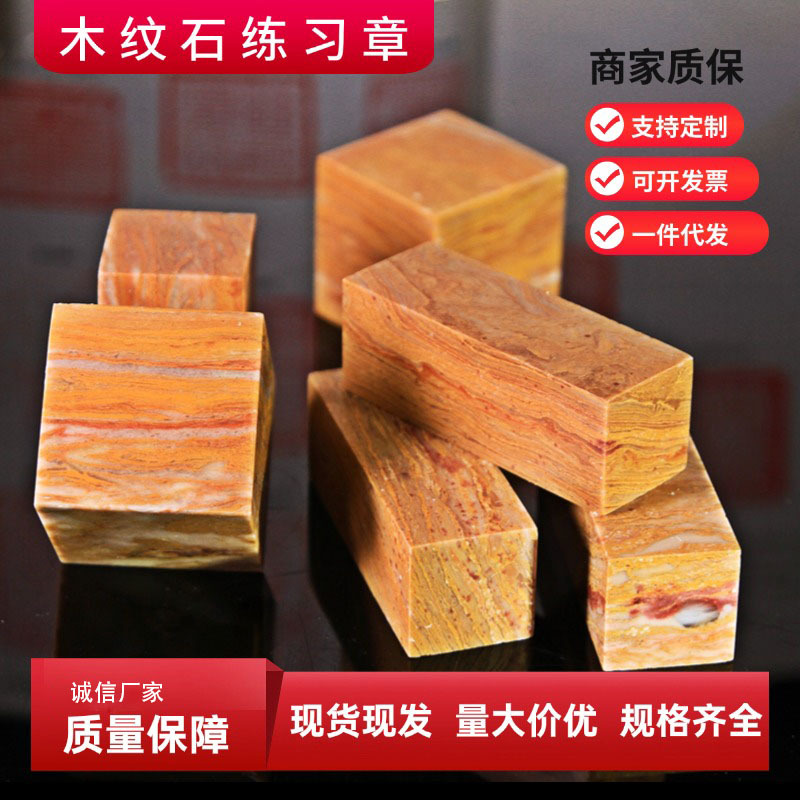 インド木紋石練習章神木印石章料寿山印章石黄木目篆刻章料代発