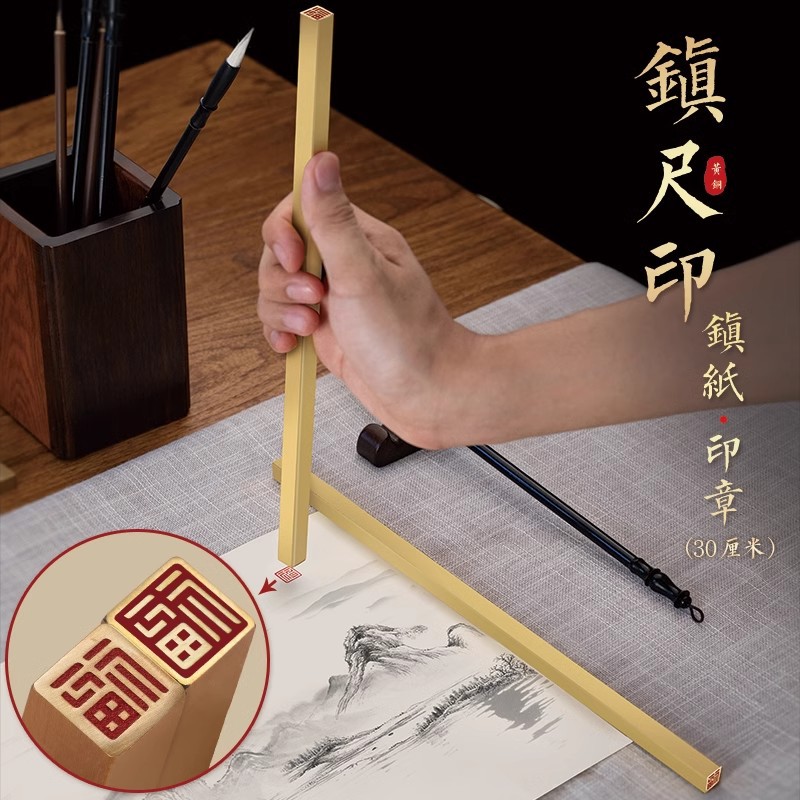 高級純銅鎮紙創意多機能毛筆立て銅筆置き模造金属鎮尺書道圧紙卸売り