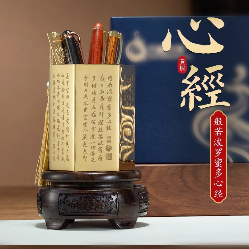 心経黄銅筆立て高級感国慶節プレゼント趙孟 𫖯 事務室デスクトップ書斎茶卓置物卸売り