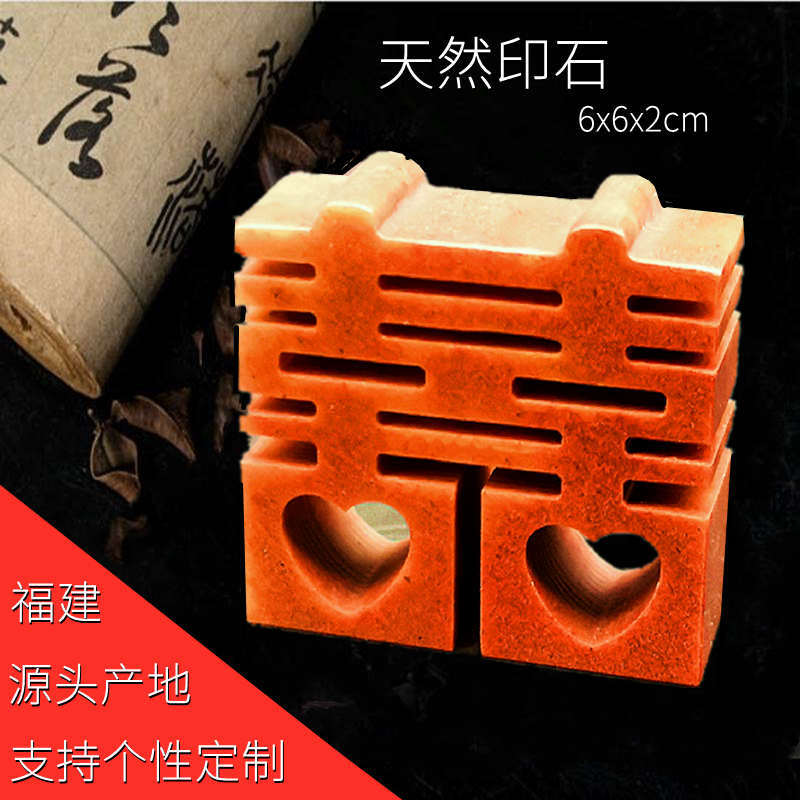 寿山石の印鑑の石材の天然の赤い双喜の連珠は結婚の贈り物を印刷します。