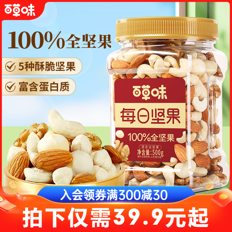 百草味 5 純粋なナッツ デイリーナッツ缶詰 500 グラム混合全粒ナッツ妊婦の健康ギフトパックドライフルーツ