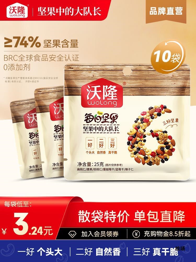 Wolong Daily Nuts 25g*10 袋混合ドライナッツ妊婦のための栄養価が高く健康的なスナック小包装