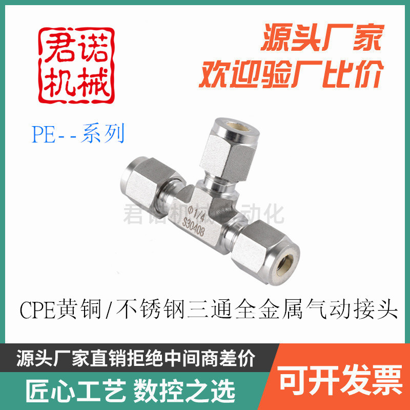 CPE黄銅/ステンレス三方全金属エアAPET PE4 PE6 PE8 PE10 PE12コネクタ