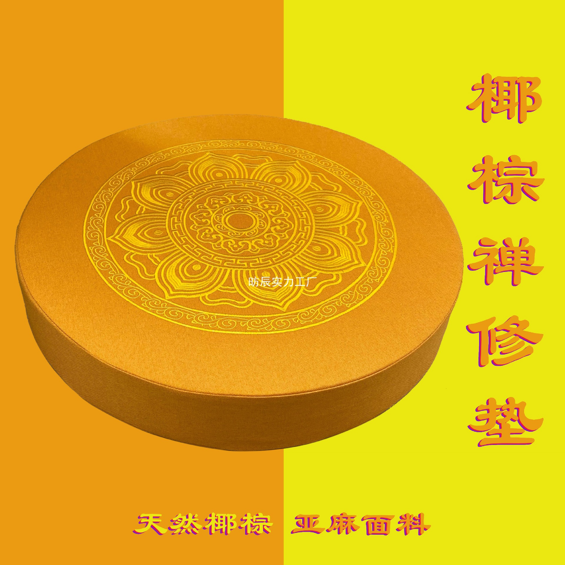 瞑想クッション、厚手のリネンココナッツパームクッション、布団礼拝マット、仏礼拝マット、取り外して洗える刺繍入り蓮の花の円形瞑想マット