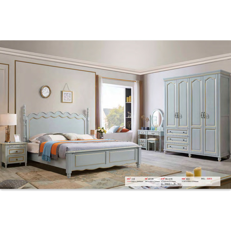 ヨーロッパ式真皮ツインベッド実木皮ベッド主臥ダブルベッド結婚ベッドフランス式ベッド四門たんすヨーロッパ式化粧台