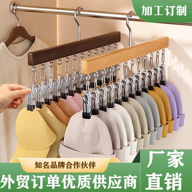 実木ズボンクリップ家庭用無痕ステンレス多機能帯十二クリップ付きたんすスカートハンガー収納神器