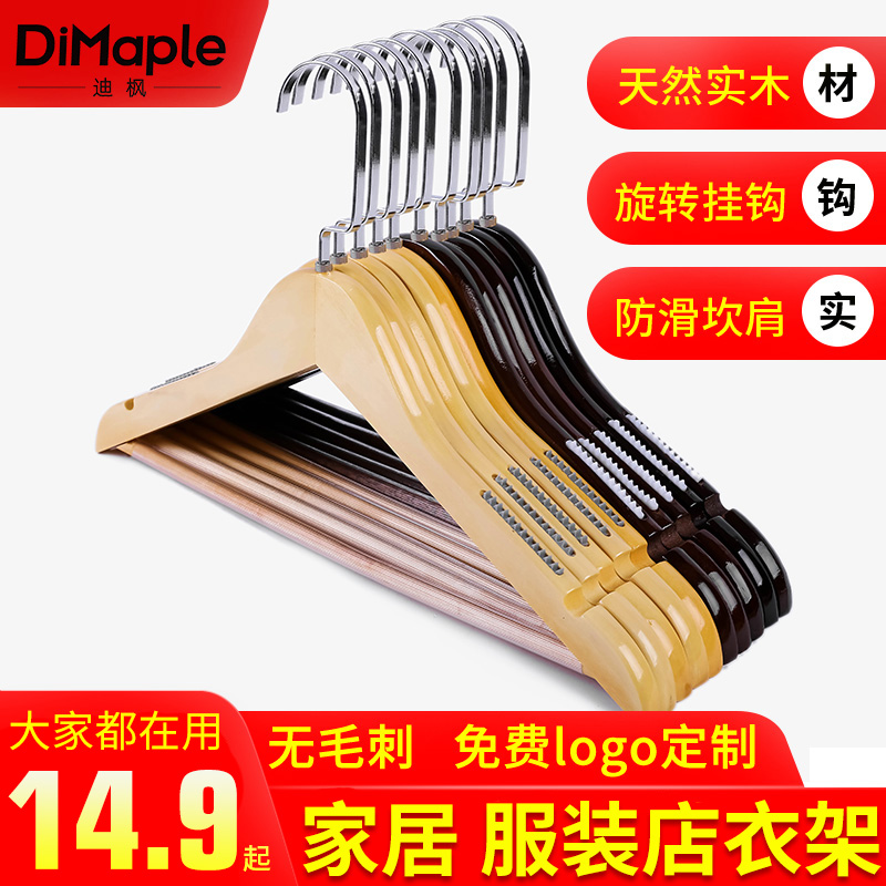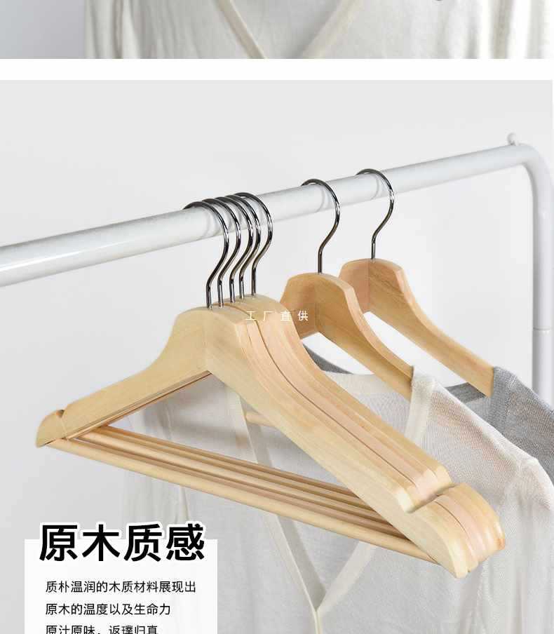 Zg原木色実木ハンガー子供成人服店専用無痕家庭用服サポート寝室ホテルハンガー