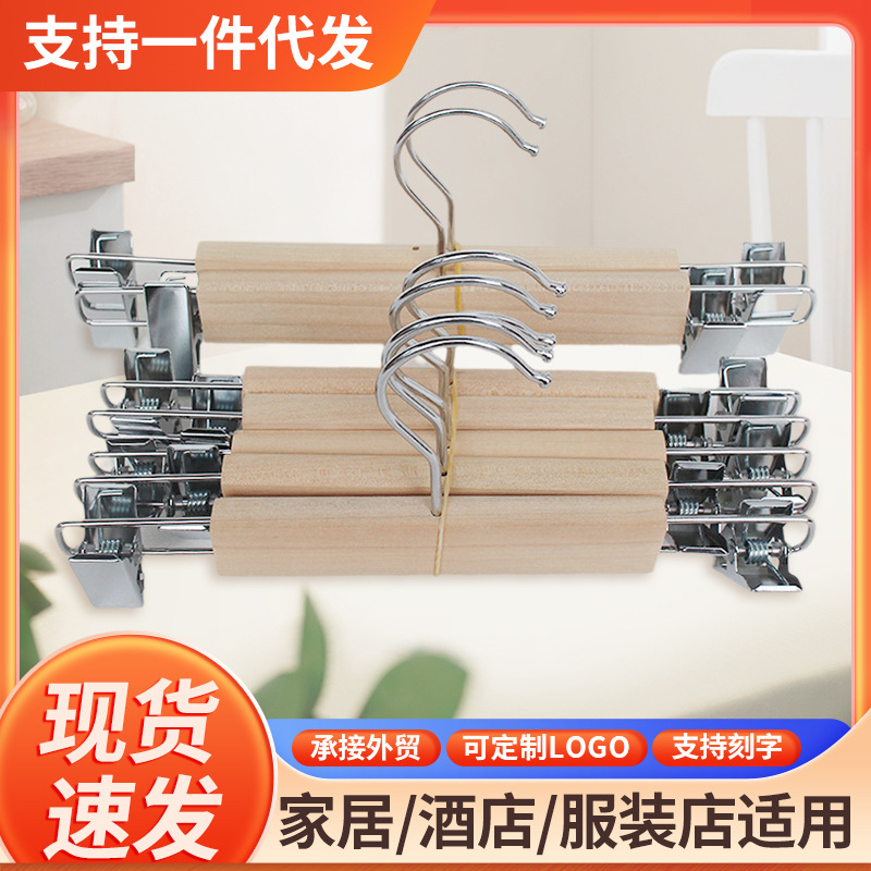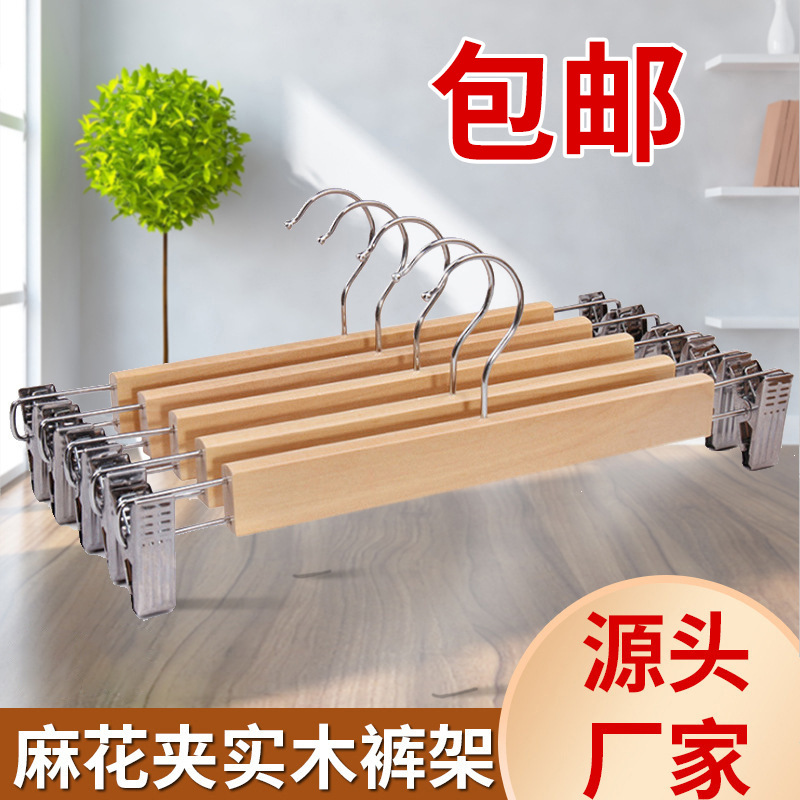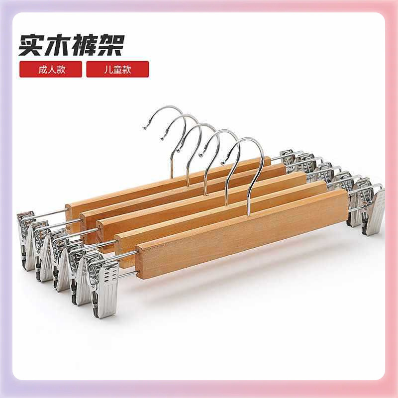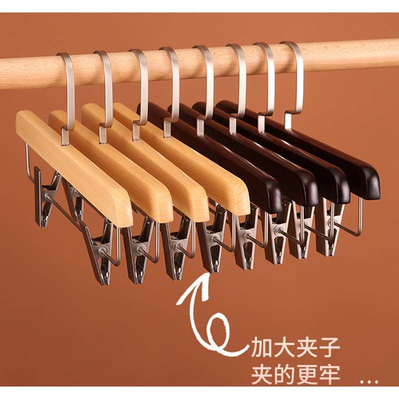 現物実木ズボンハンガー児童成人多機能家庭用無痕ズボンハンガー復古原木ズボンハンガークリップ