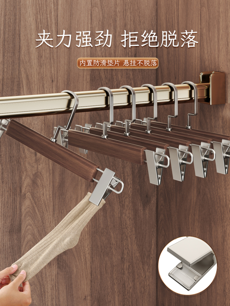 無垢材ズボンラック無痕ダブルクリップズボン専用家庭用洋服店ズボンクリップハンガー木製多機能ズボンクリップ