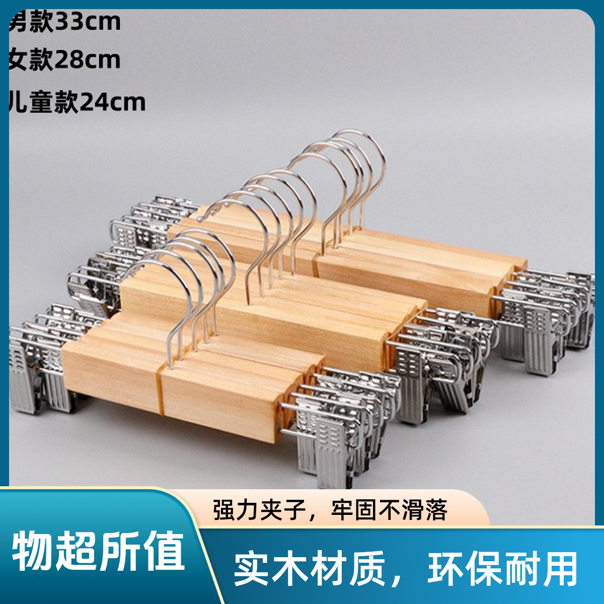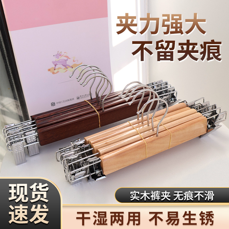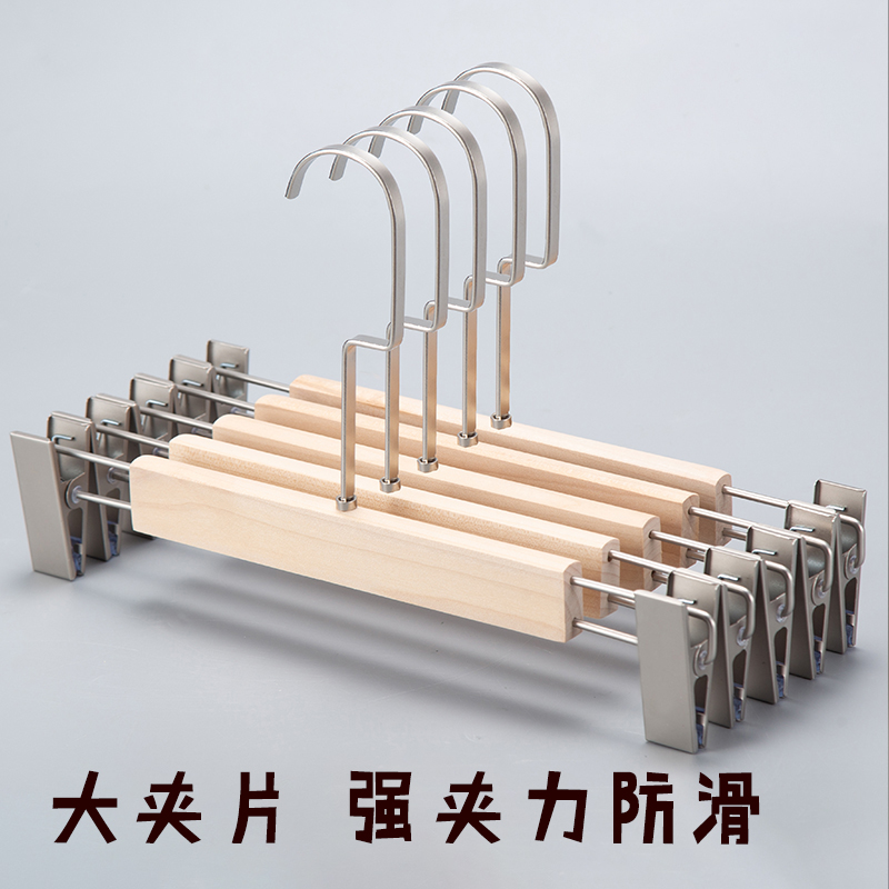 実木ズボン棚下着クリップ家庭用無痕ズボン掛け女性スカート多機能クリップ付きズボンクリップハンガー卸売り