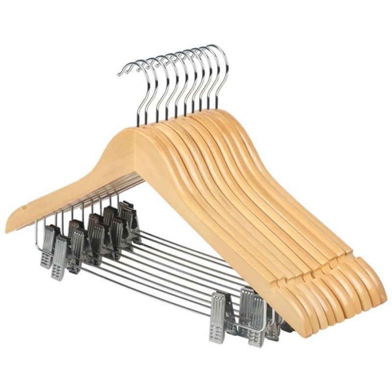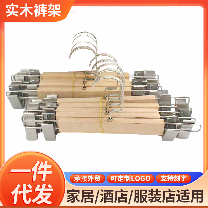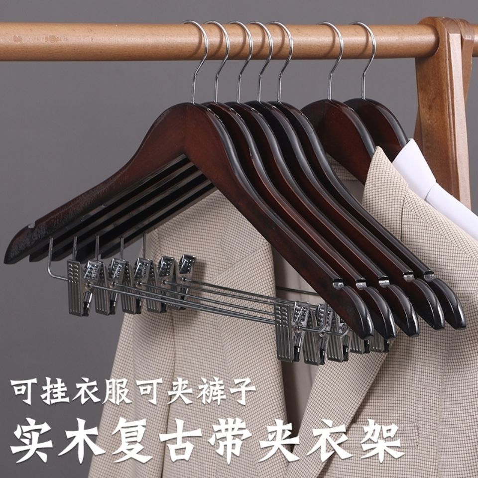 ハンガークリップ付き実木セット成人木滑り止め木製ズボンクリップ一体ズボンフレーム無痕服掛け卸売り