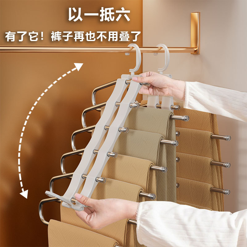 伸縮式多機能ズボンラック、多層折りたたみズボンハンガー、家庭用マジックズボンクリップ、ワードローブ収納アーティファクト、ビューティーチェン