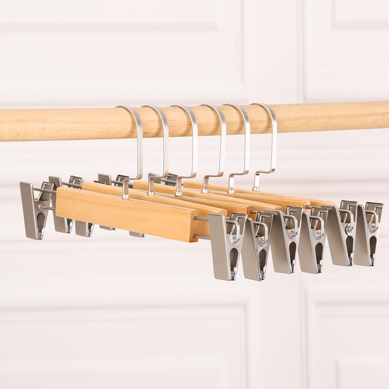 無垢材のズボンラック、ズボンクリップ、スカート、家庭用ワードローブ、シームレスで強力な衣料品店のハンガー、ズボンハンガー、木製ズボンクリップ