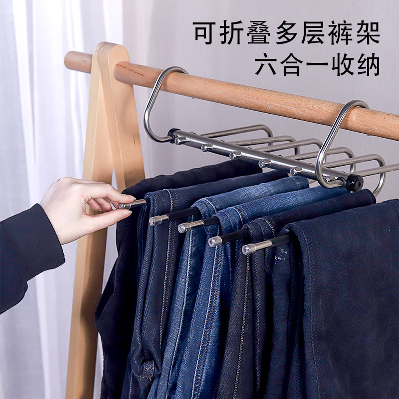 伸縮折り畳み多機能多層ズボンハンガー家庭用マジックズボン収納神器ズボン掛け