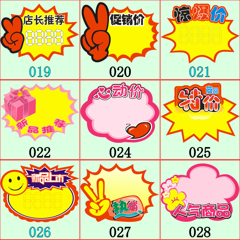 大型爆発ステッカー新規掲載POPラベル価格割引カードネット有名人スーパーマーケットイベントプロモーションホットセール