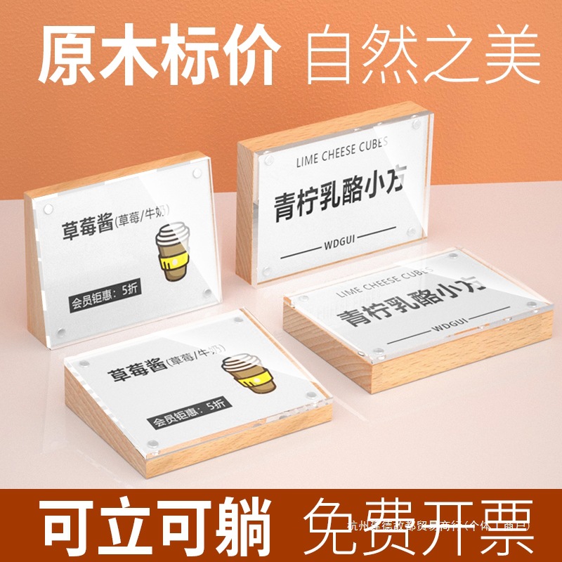 榉木标价牌座蛋糕标签夹面包店实木标签架烘焙店价签夹台卡垒德株