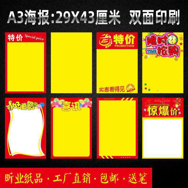 ポスター紙 29*43 大 4 空白純黄色両面爆発ステッカー手描きポスター値札