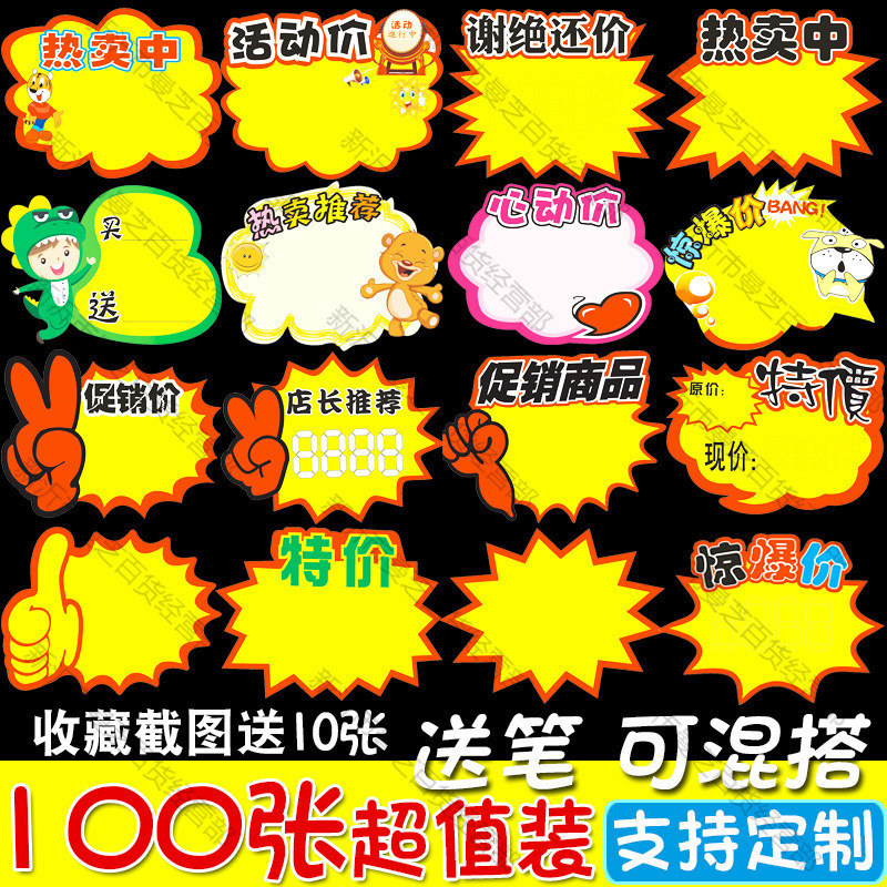 スーパーマーケットの値札大型インターネット有名人広告紙新しいクリエイティブ爆発ステッカー特別価格看板商品価格