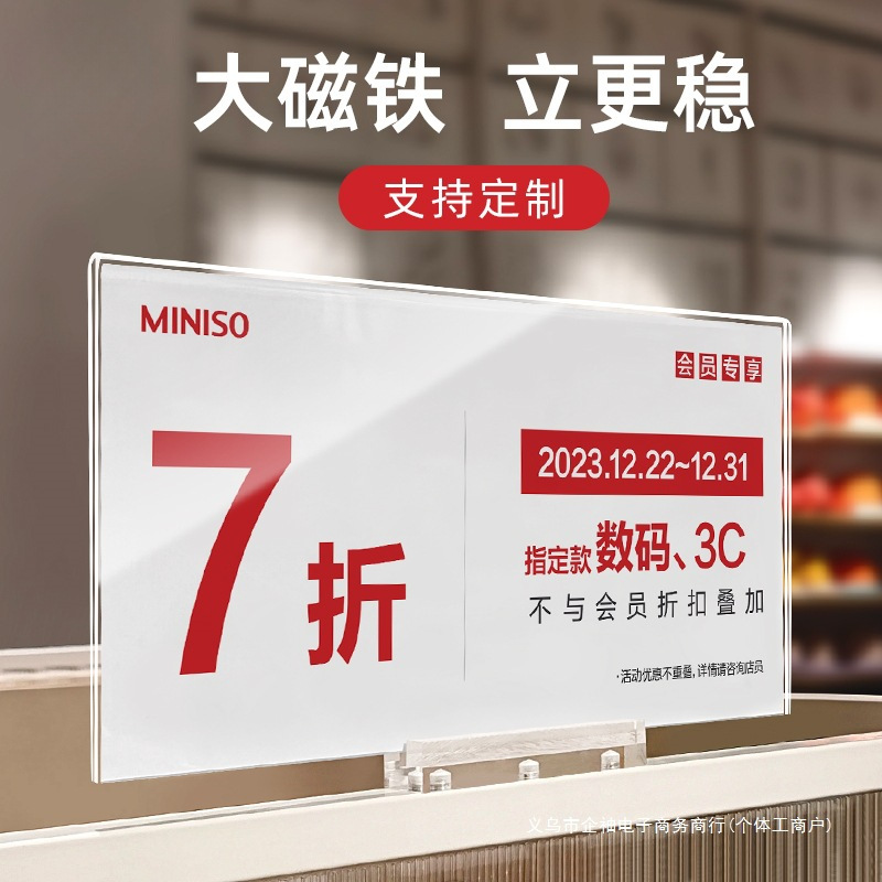 アクリル棚表示看板看板磁気スタンド価格看板ショッピングモール衣料品スーパーマーケット薬局特別価格看板