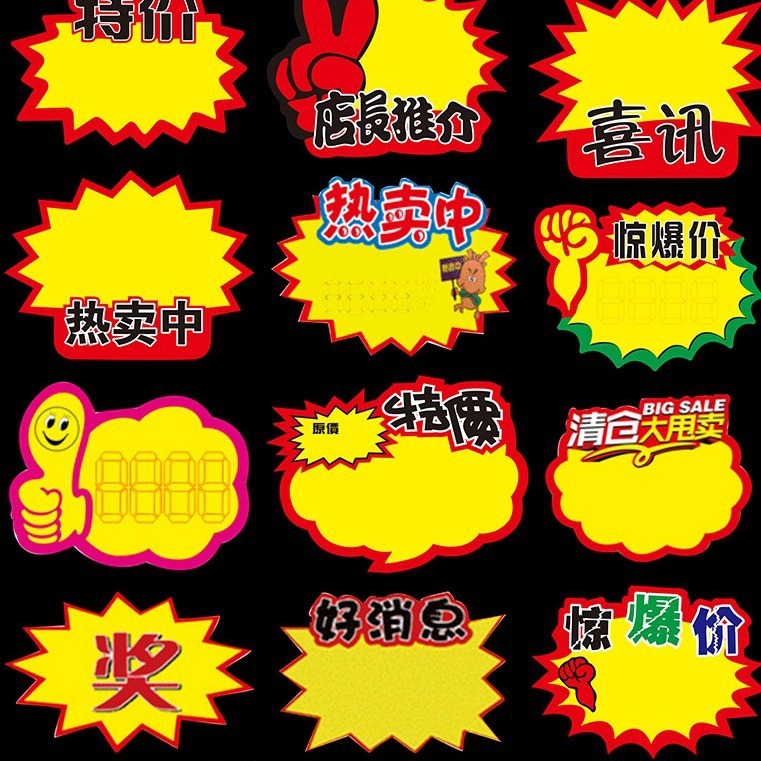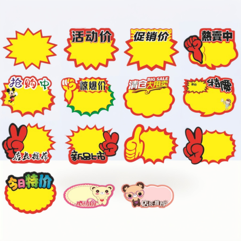 卸売空白手書き爆発ステッカーショッピングモールスーパーマーケットイベント価格POP広告紙商品値札プロモーションカード