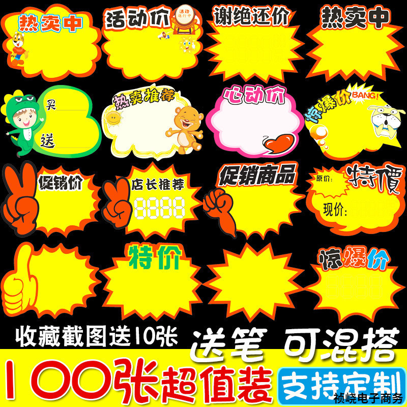 衣料品店の値札ポッププロモーション看板割引爆発ステッカー衣料品新規上場価格タグ