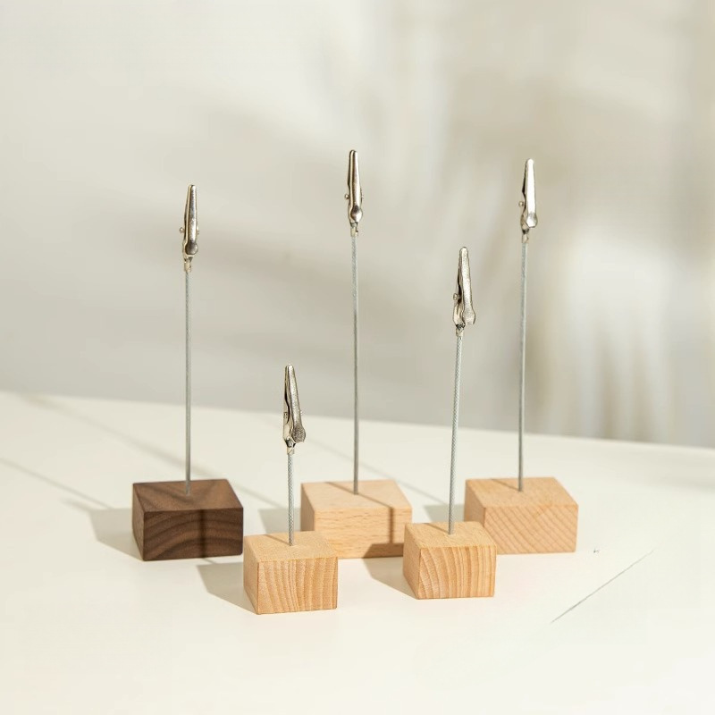 無垢材価格表示カード、席札、メッセージホルダー、メモホルダー、ラベルホルダー、ポップ広告デスクトップカード