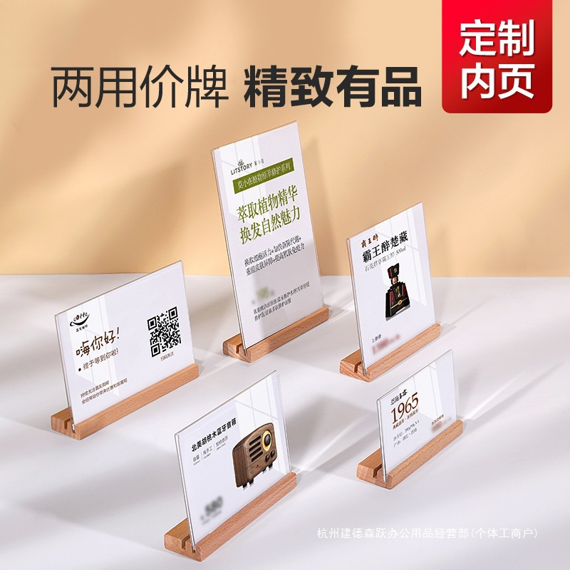 両用無垢材価格表示板商品値札木製値札スタンドテーブルアクリル小型テーブルカード木製