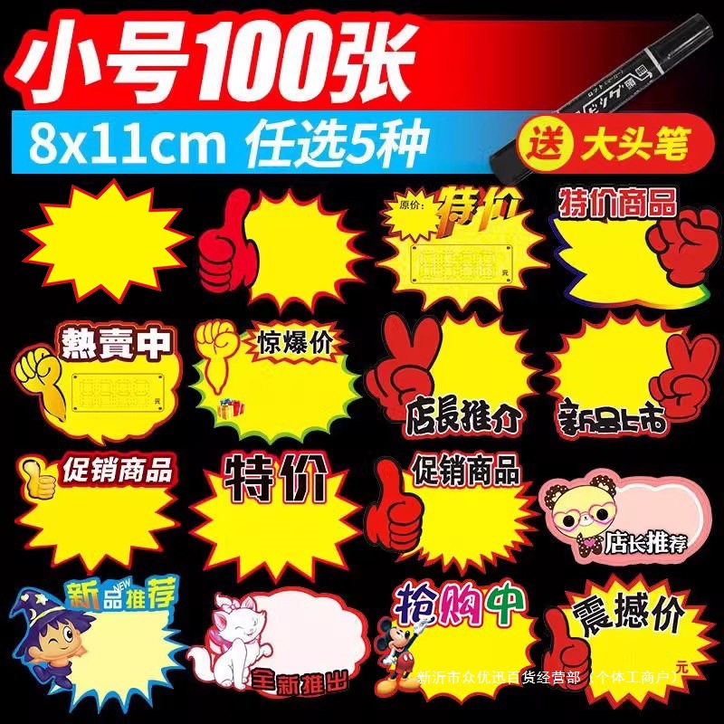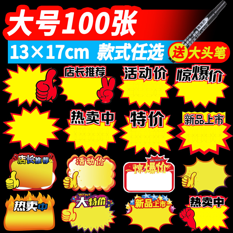 爆発ラベル値札衣料品店割引カード新しいネット有名人特別価格ラベル価格表示タイムズフレーバー