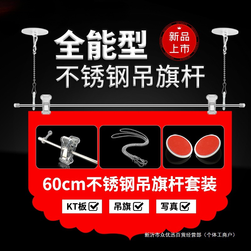 ステンレス吊り旗吊り竿 3点セット 吊り竿 60cm 絵軸 広告紙クリップ KTボード ロープ ディスプレイスタンド 海