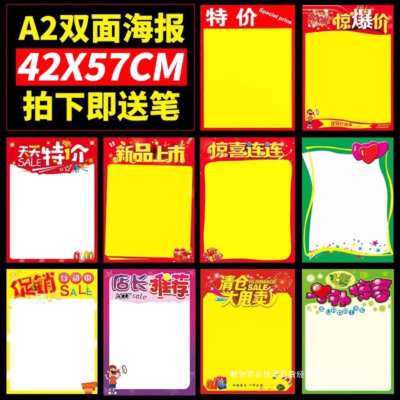 厚みのある 8K ポスター紙 POP 広告紙両面印刷 8 オープンスーパーマーケットプロモーション看板 29*43 センチメートルポスター