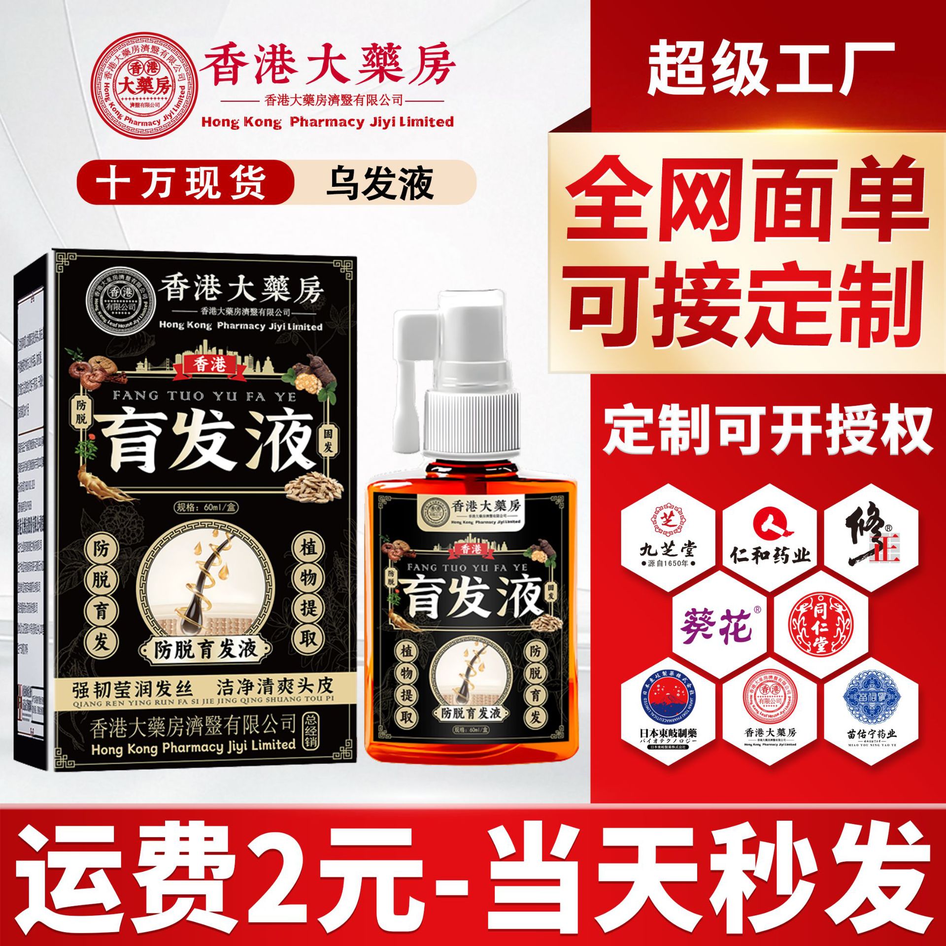 香港大薬局の何首烏育毛液保護液草本育毛自然養黒防脱密髪黒髪