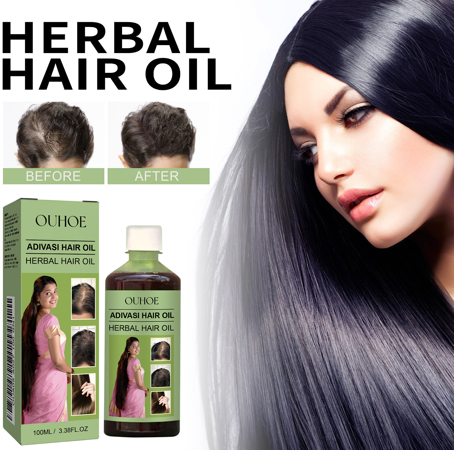OUHOE ハーブヘアオイルは頭皮に優しく栄養を与え、髪を強化し、頭皮をきれいにし、滑らかなヘアオイルをケアします。
