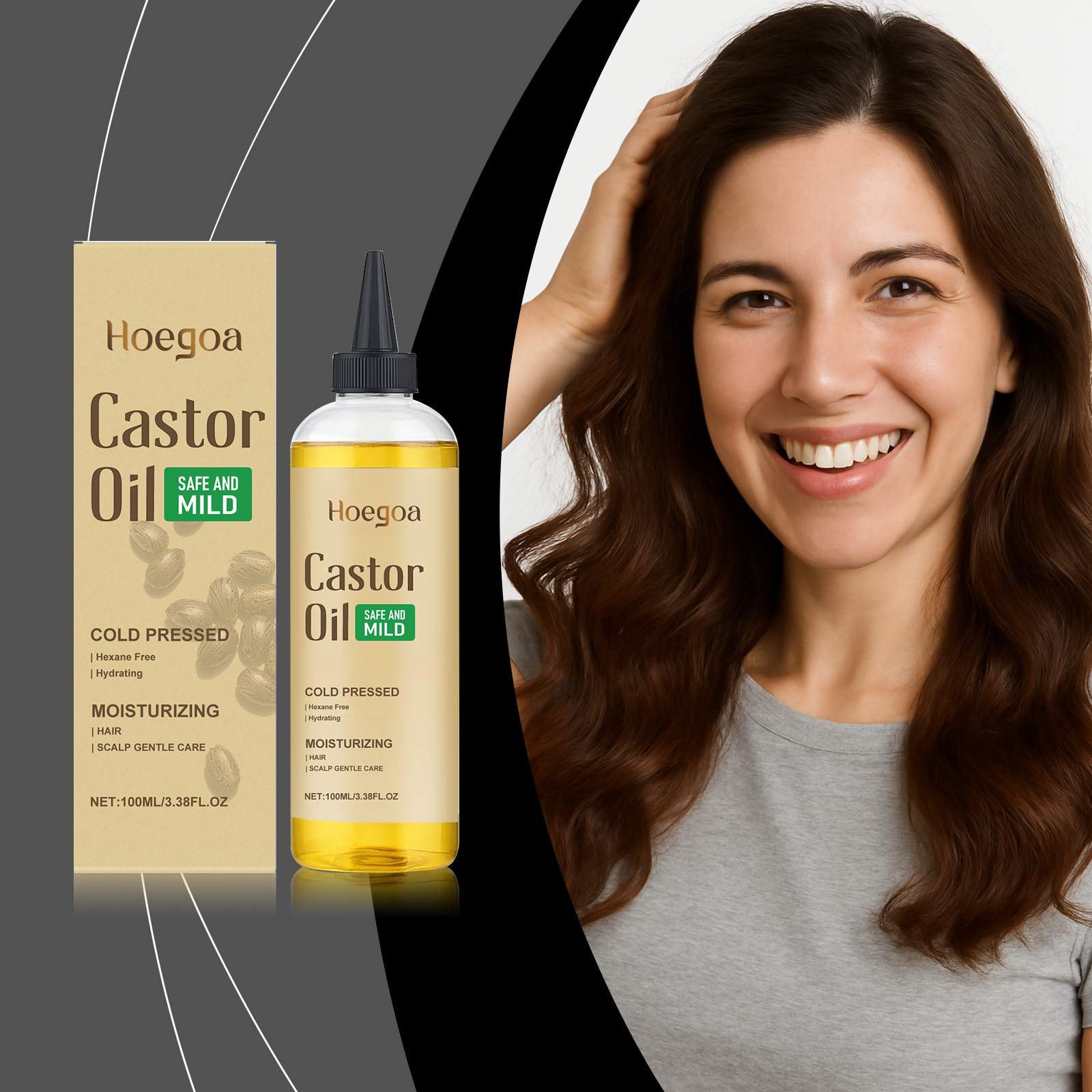 HOEGOA ヘアケア ヒマシ油は頭皮に栄養を与え、髪に潤いを与え、髪を優しくケアし、光沢と滑らかさを与えます。