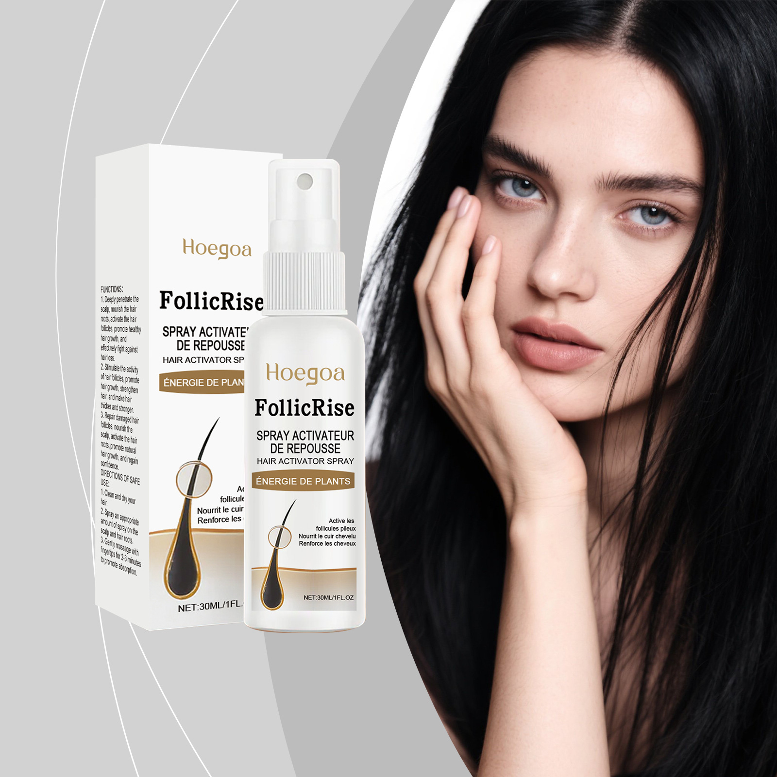 HOEGOA ヘアケア エッセンス スプレーは、髪に栄養を与え、滑らかにし、香りを与え、潤いを与え、滑らかにし、ストレート カールを維持し、香りを残します。
