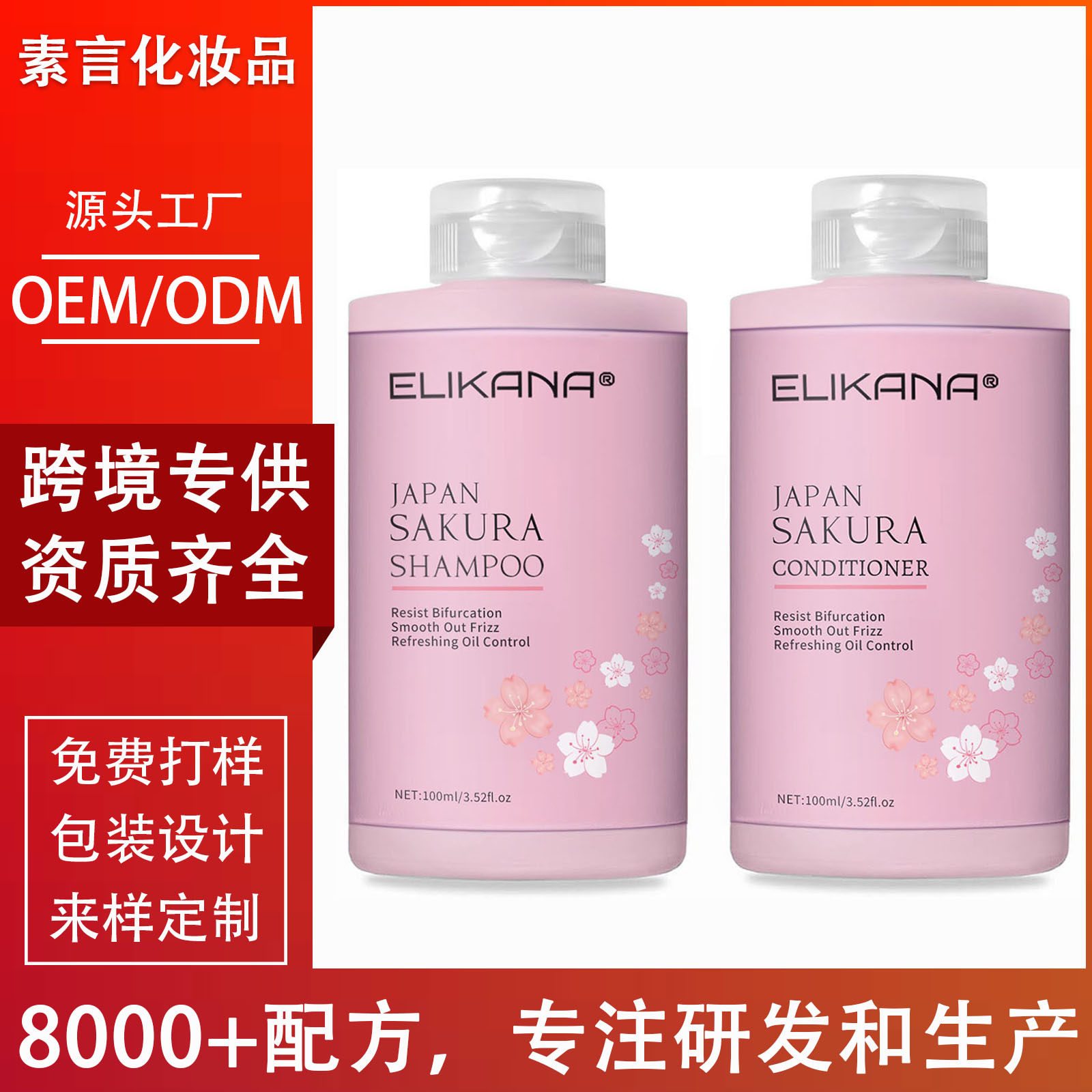 桜の花のシャンプーとコンディショナーのセット、クリーン、滑らか、光沢、香りが長持ちする香りのシャンプーを越境で提供
