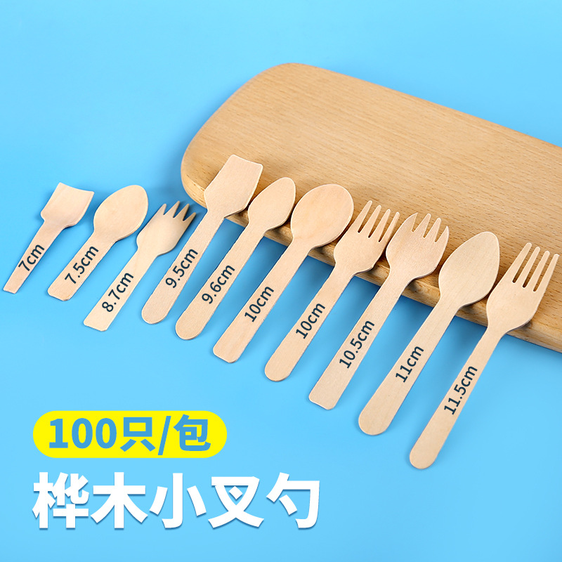 使い捨て木製カトラリー、環境に優しい木製食器、ケーキフォーク、シンプルな樺材アイスクリームスプーン、デザート木製スプーン