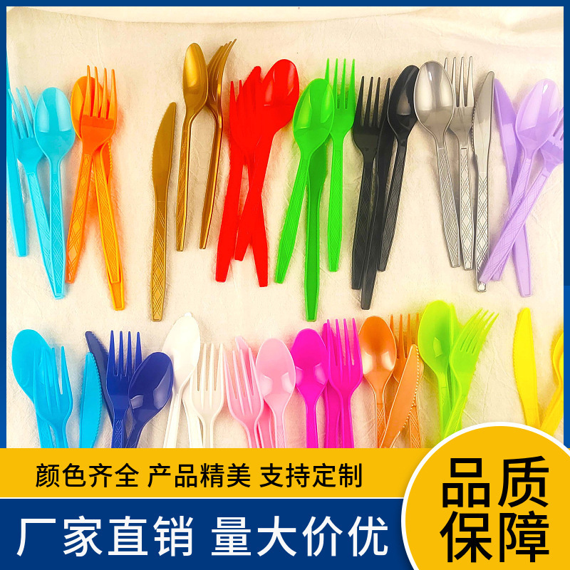 工場価格卸売りクロスボーダーパーティー誕生日結婚パーティー使い捨て食器環境保護プラスチックpsカラーナイフフォークスプーン