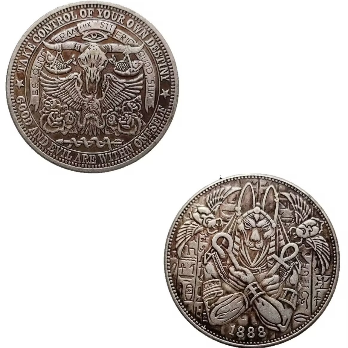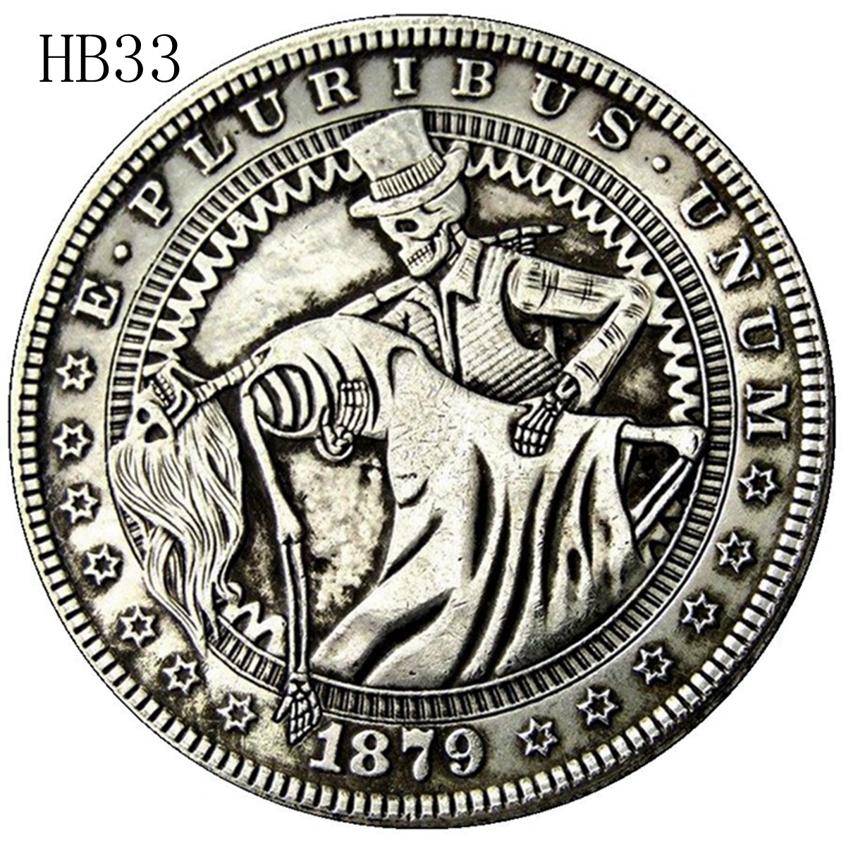 HB218 ラウンドボックスアンティーク工芸品放浪者アメリカ銀貨真鍮銀メッキ記念コイン